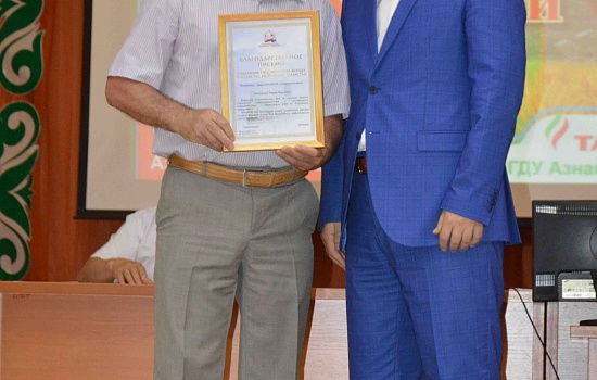30 июня состоялось еженедельное совещание «По основным вопросам жизнедеятельности района и города Азнакаево». Глава Азнакаевского муниципального района Марсель Шайдуллин торжественно вручил Благодарственное Письмо отделения Пенсионного Фонда России по Республике Татарстан начальнику Управления НГДУ «Азнакаевскнефть» за участие в шестом Всероссийском конкурсе «Лучший страхователь по обязательному пенсионному страхованию 2015 года».