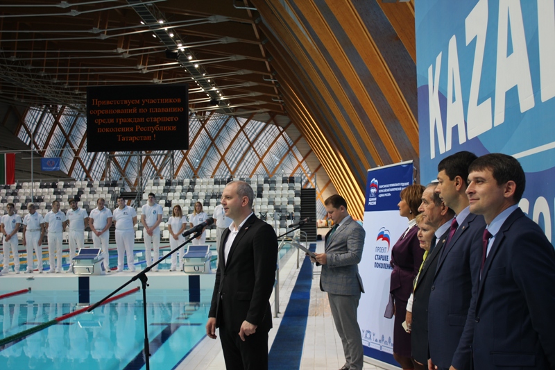 Во Дворце водных видов спорта собрались более 150 любителей плавания из 41 муниципального образования республики. Приветственным словом открыли соревнования Министр труда, занятости и социальной защиты Эльмира Зарипова и советник управляющего Отделением Пенсионного фонда Республики Татарстан Станислав Голле.